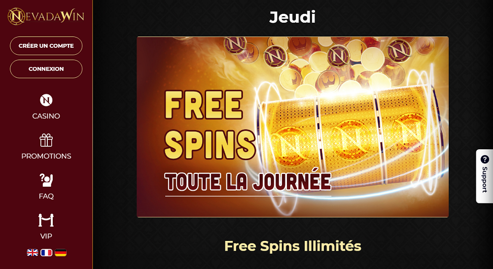 Les jeux de casino en ligne soulignent l’identité d’un établissement de jeux. Toutefois, c’est la qualité des bonus et promotions qui permettent de monter dans l’estime des joueurs. Pour le cas de Nevadawin, les bonus cash et les free spins vous donnent rendez-vous au début même de votre aventure.